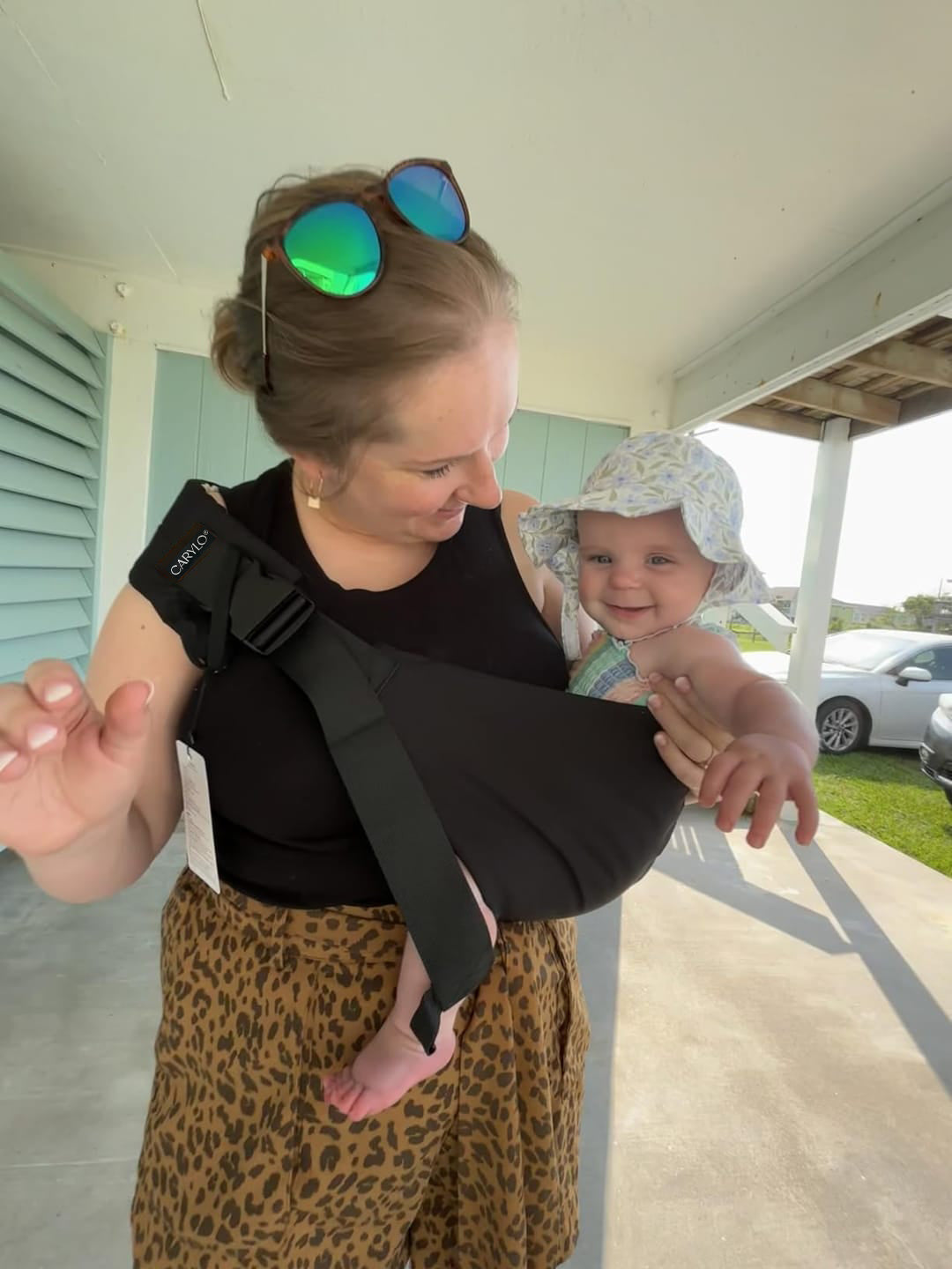 Fácil y rápido de usar, el portabebés CARYLO® cabe perfectamente en tu bolso o en el cochecito, listo para desplegarse cuando lo necesites.